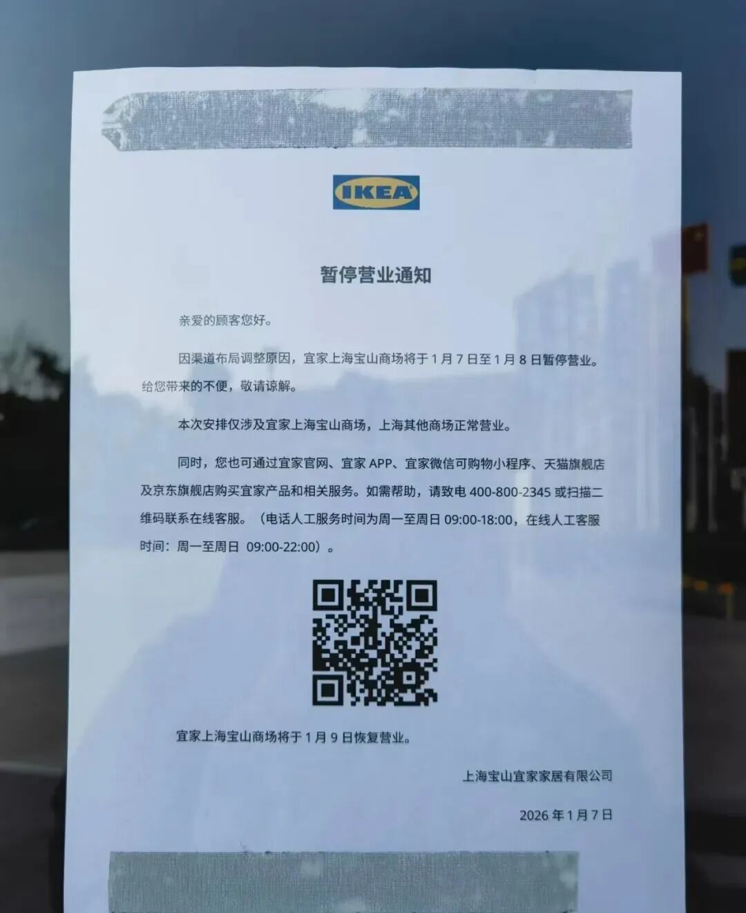 决定自2026年2月2日起停止运营包括宜家上海宝山商场、宜家广州番禺商场、宜家天津中北商场、宜家南通商场、宜家徐州商场、宜家宁波商场和宜家哈尔滨商场在内的七个线下触点。