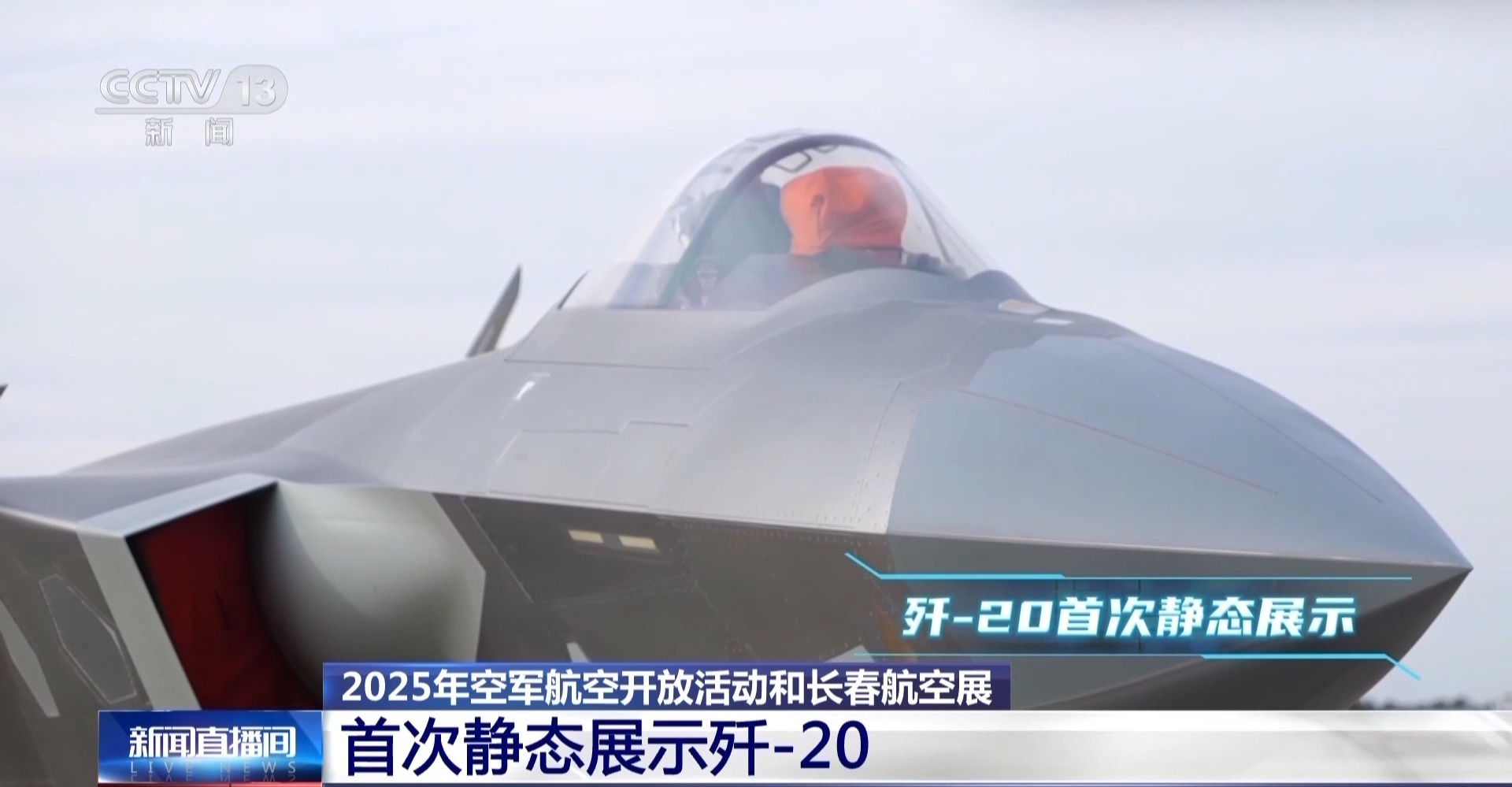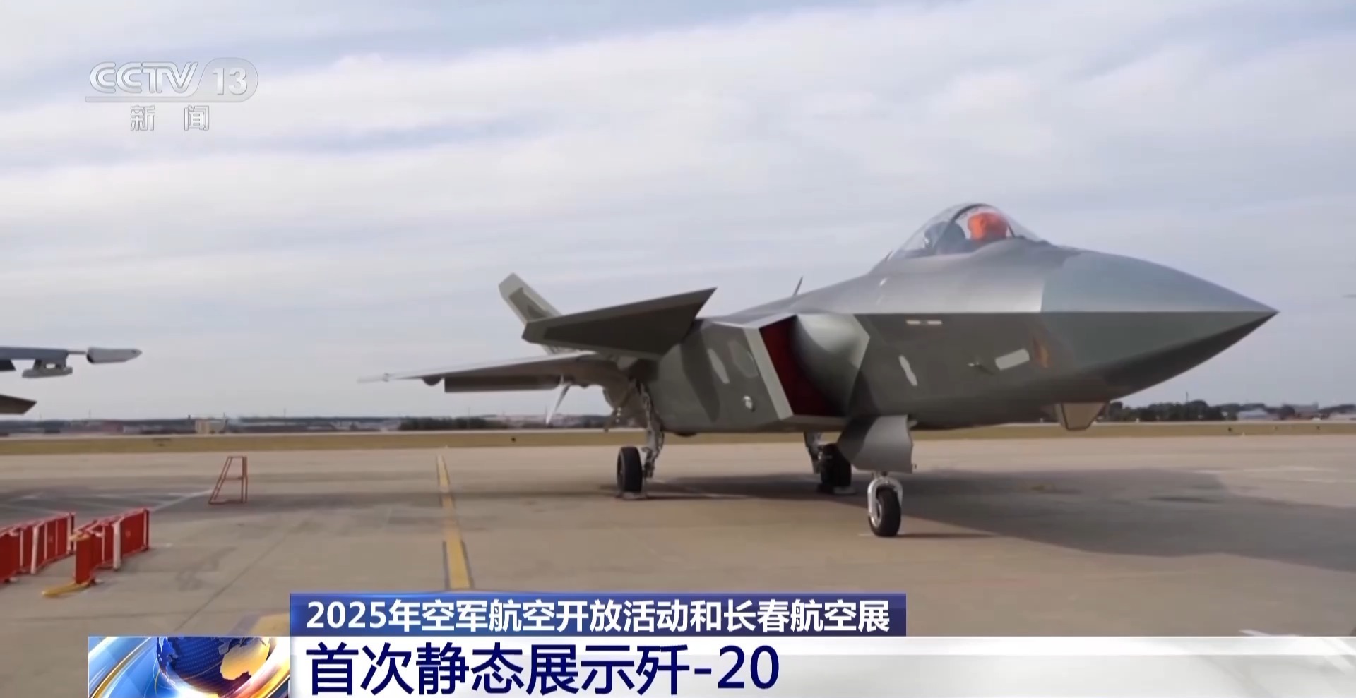 空军航空开放活动和长春航空展首日,随着歼-20的飞行展示结束,编队中的一架歼-20在展示区进行了首次静态展示。